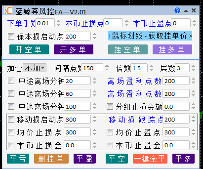 当交易该货币对时,EA会自动计算该方向货币对所有持仓单的平均价格,并将其作为止损或止盈的参考点。通过使用均价来设置止损和止盈,交易者可以更加准确地管理风险和利润,这种功能可以帮助交易者在市场波动较大或持仓单数量较多时,更好地控制风险,并在合适的时机平仓。