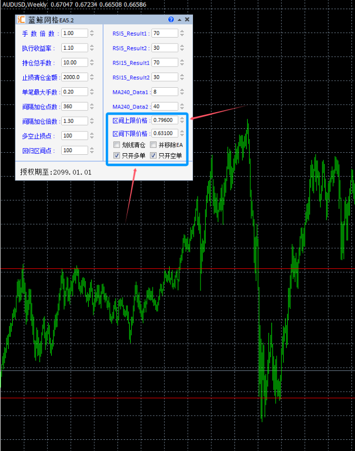 我们精心优化了14个品种参数。用户加载后,仅需简单设置区间上下限价格,然后选择多单或空单启动,EA即可全天24小时交易,这款策略赚点小钱还是相对比较简单的,如果您在使用过程中有更好的思维欢迎向我们反馈,共同进步!