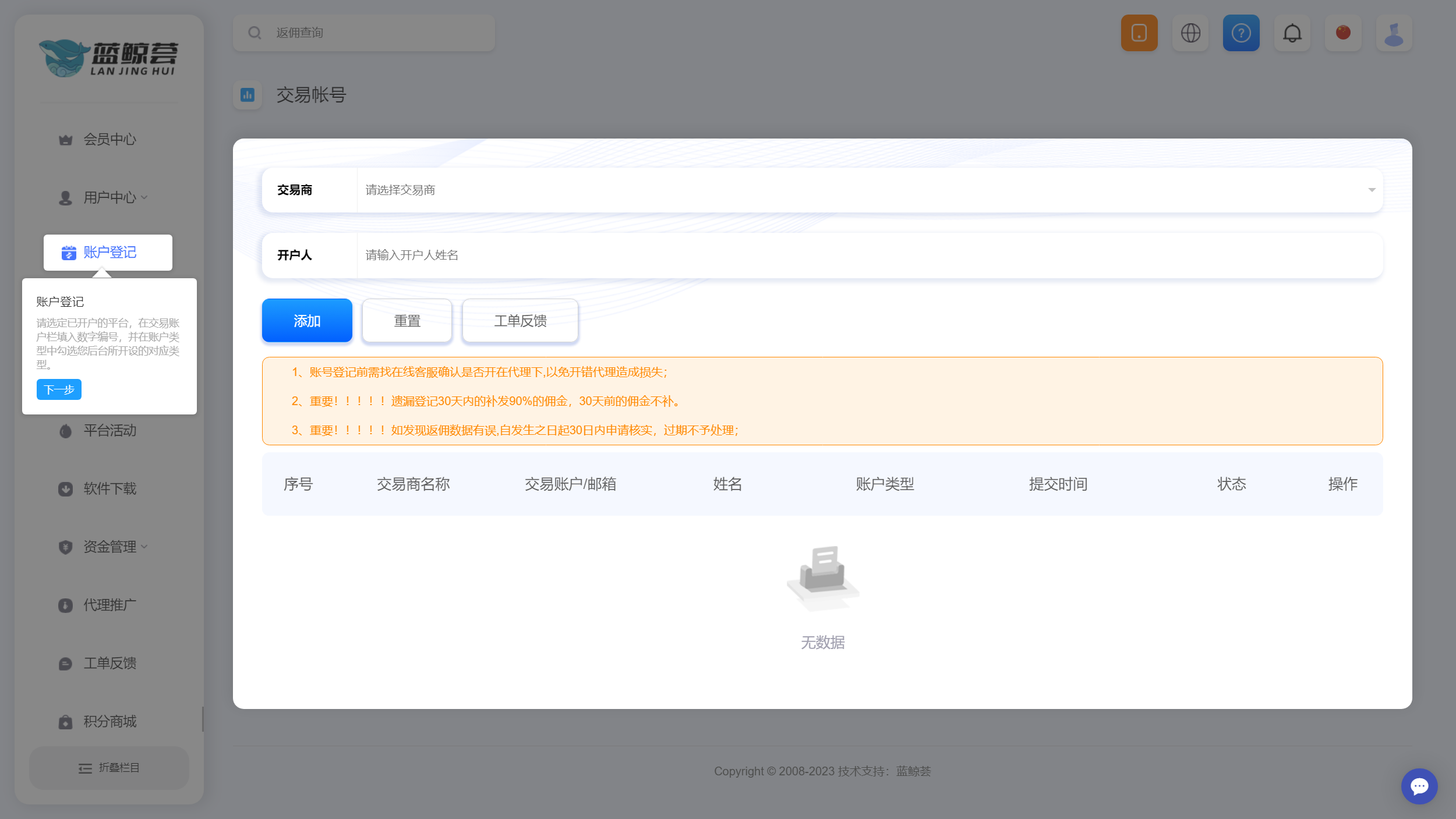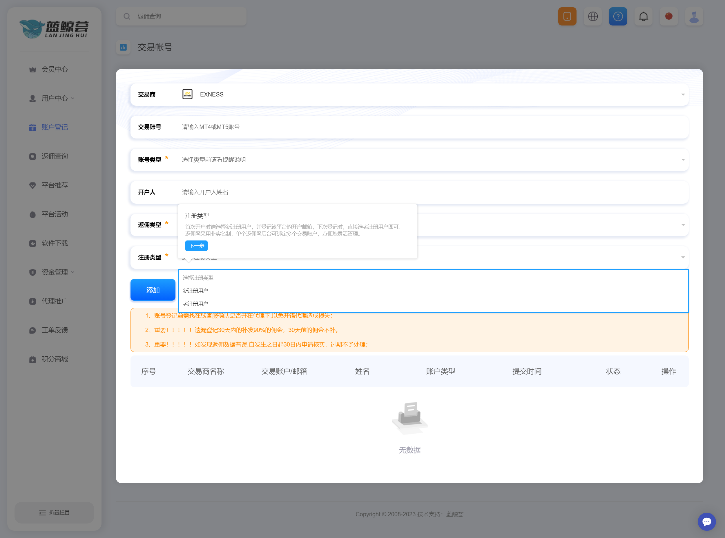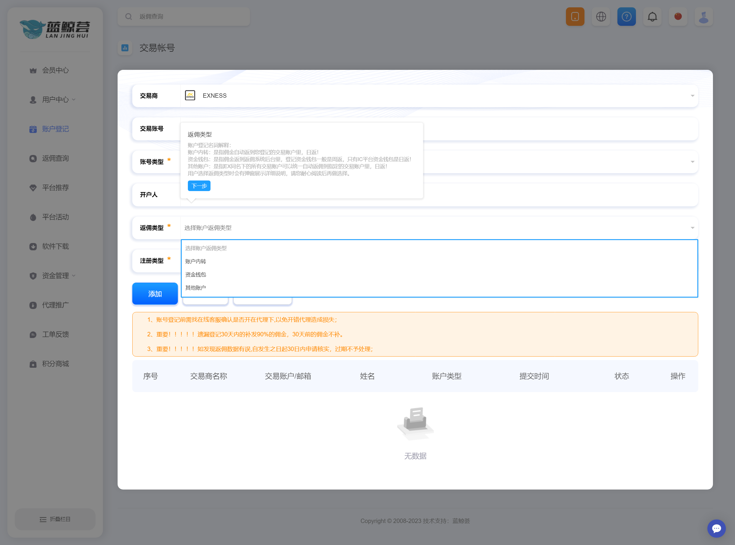 【新手必看】蓝鲸荟返佣后台使用教程详解