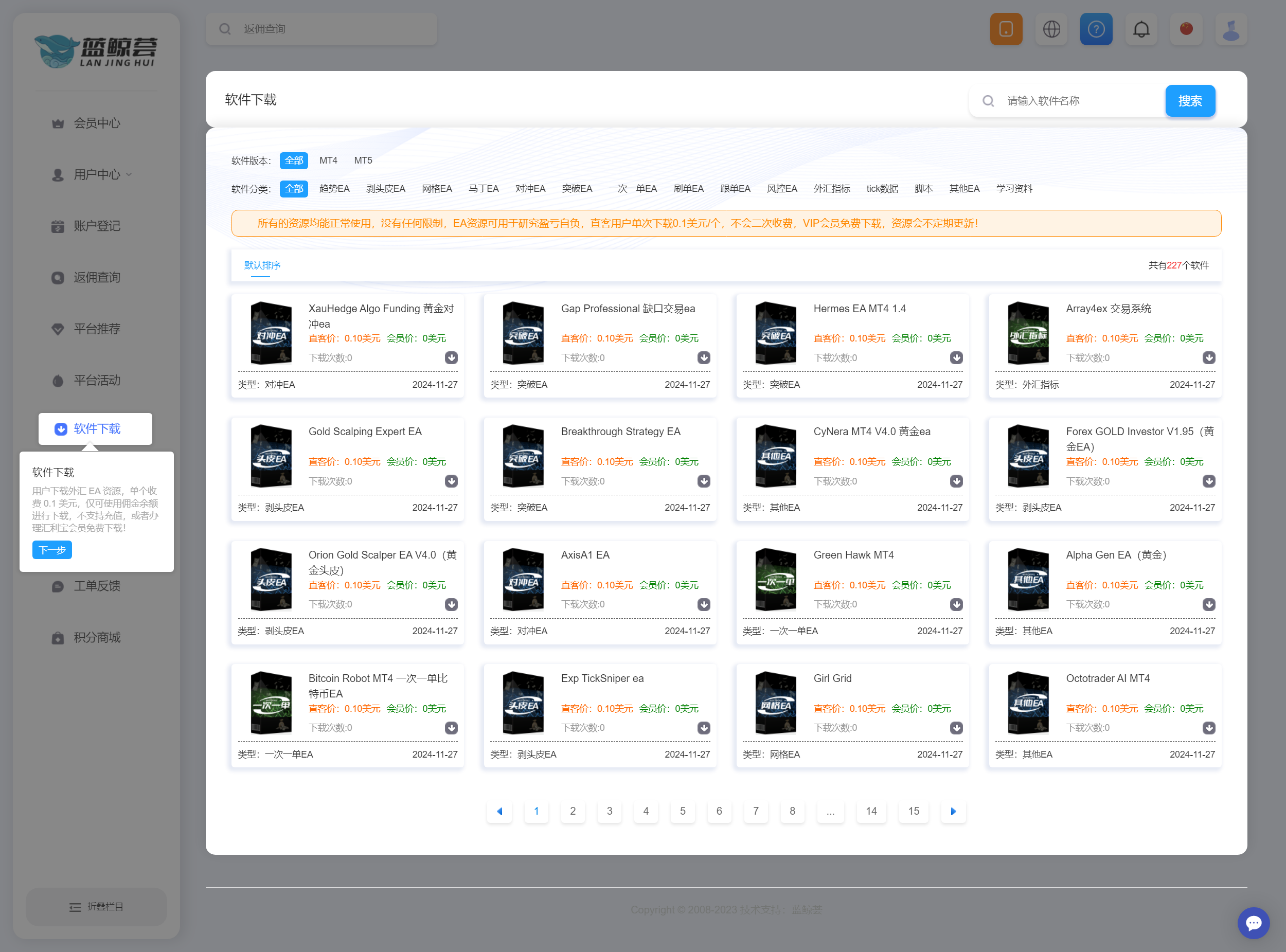 如何查找忠诚度返佣界面?首先登录到蓝鲸荟返佣网后台首页:https://lanjingfx.com/user/右上角头像下拉框有个注册会员点一下可跳转到忠诚度会员等级页面。进入该页面详细看下不同等级的